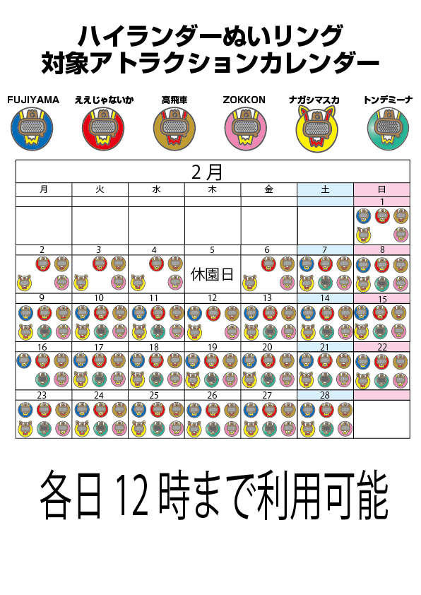 ・悪天候や施設点検により営業休止になる場合がございますので、予めご了承ください。