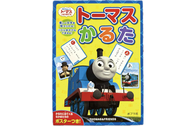 トーマスとなかまたちと一緒に、楽しく文字を覚えられるかるたです。