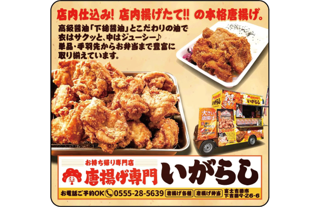 揚げたてのジューシーでザクザク食感が美味しい唐揚げです。