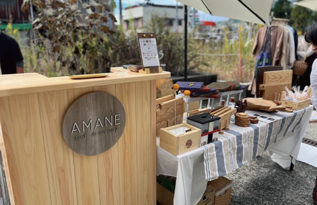 織物生地を使ったポーチやアクセサリー、木製のインテリア雑貨など、"暮らしをちょっと楽しくする"ハンドメイドアイテムを販売します。お子さまも楽しめるロゼットづくりのワークショップも開催予定です!