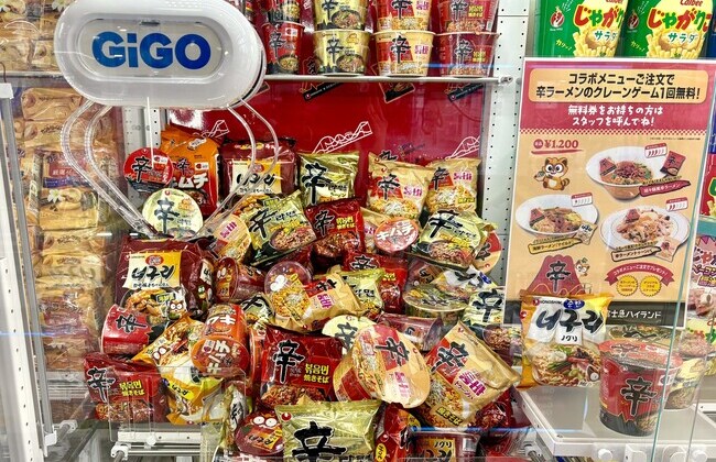 GIGO 富士急ハイランド店にて、辛ラーメンのカップ麺と袋麺のクレーンゲームが1回100円で楽しめる!!