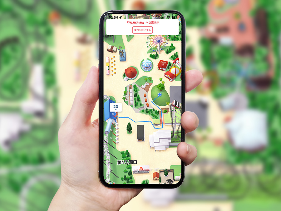 園内にいる状態で行きたい場所を選択しルート案内で現在地から目的地までご案内!