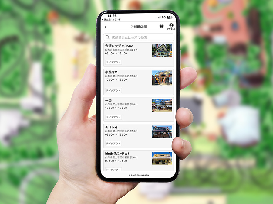 園内の店舗を並ぶことなく好きな場所で好きな時間に食べられるモバイルオーダーサービスです。事前にモバイルオーダーして待ち時間を解消。時間になったらお店で商品をピックアップできるので混雑を避けてお食事ができます。