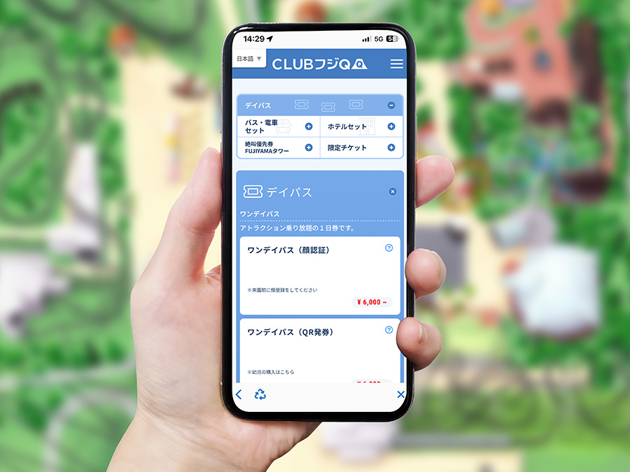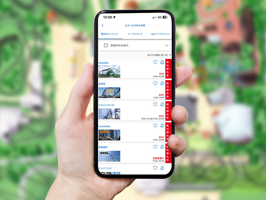 オンラインの「ワンデイパス」やアトラクションの待ち時間を短縮できる「絶叫優先券」の購入がアプリで可能。 -
