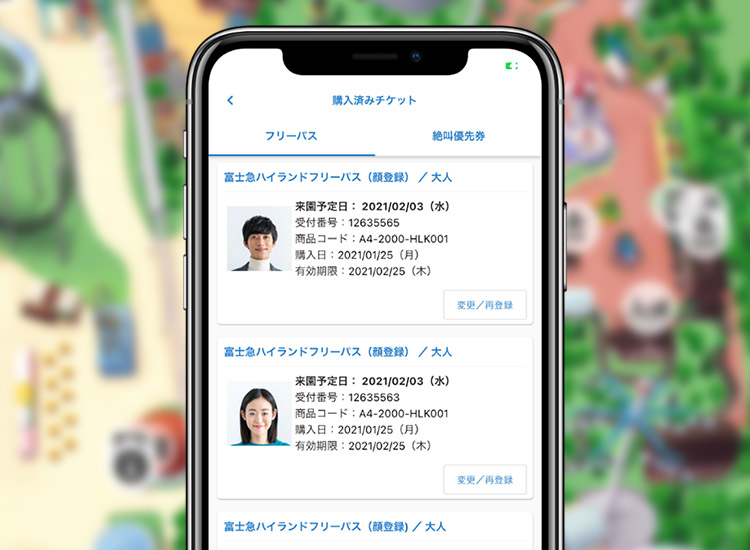 顔写真を事前に登録してスムーズに入園できる「オンライン顔登録ワンデイパス」や、アトラクションの待ち時間を短縮することができる「絶叫優先券」の購入が、アプリ上から可能になります。(アプリ内でチケット用の顔写真の撮影&登録も可能です。) -