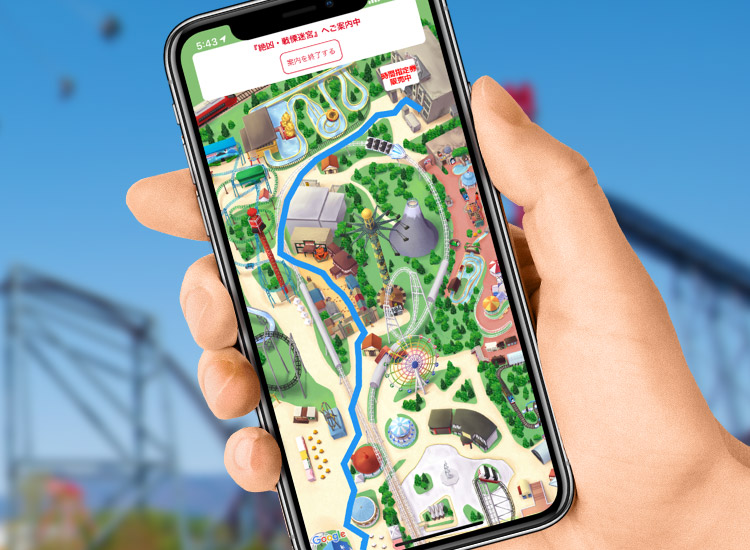 自分の現在地が表示され、各目的地までのルート案内機能も付いているため、広い園内を迷わず快適に散策できます。 -