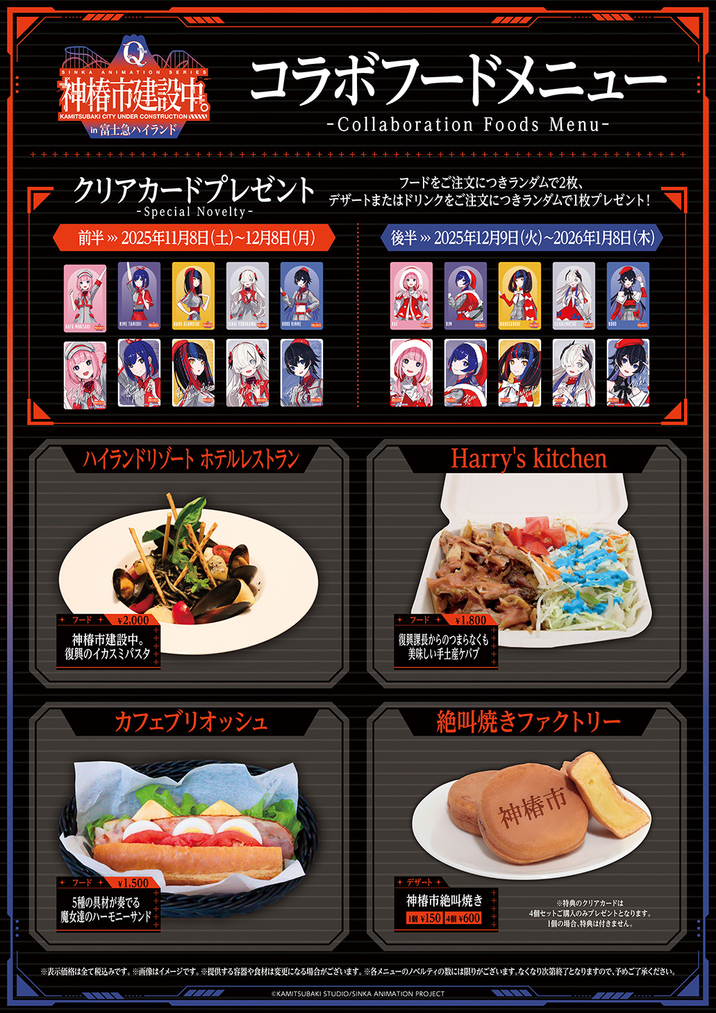 「クリアカード」をランダムでフードご注文につき2枚、