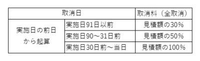■取消の場合、以下内容の取消料が発生いたします。