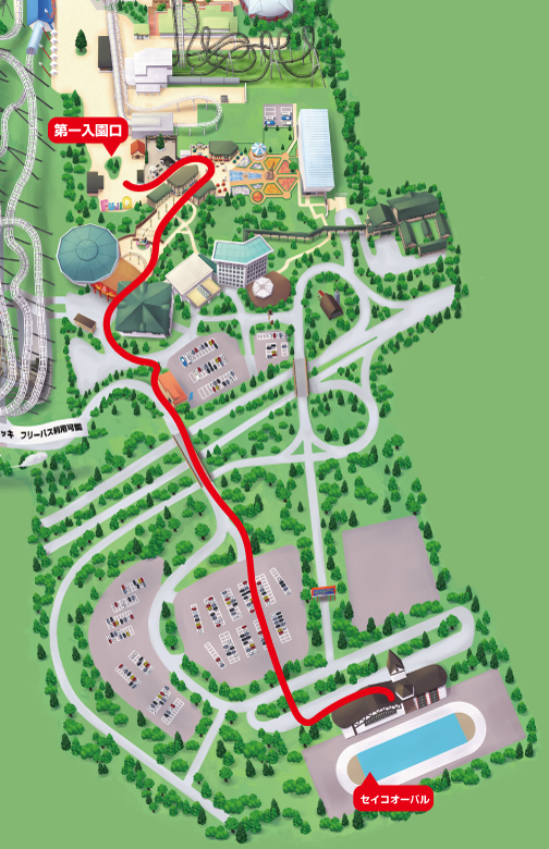タイル調の橋を渡り、第三駐車場の先にございます。